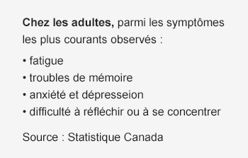On a signalé plus de 100 symptômes chez les adultes, résume Santé Canada sur sa page Web consacrée au syndrome de la COVID longue. Au nombre des symptômes les plus souvent observés est le brouillard cérébral ou mental.