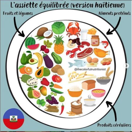 L’assiette équilibrée (version haïtienne) de Sandrine Staco (source: Instagram @thecolorfulnutritionist).